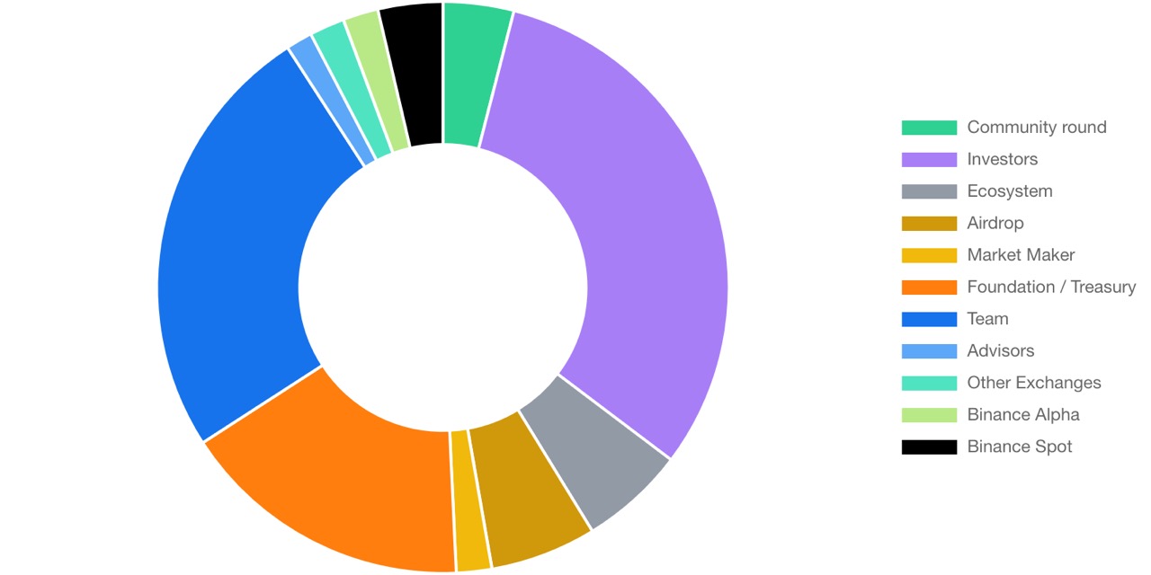 - Lượng cung lưu hành khi niêm yết trên Binance: 20.590.000 (20,59% tổng cung token gốc)