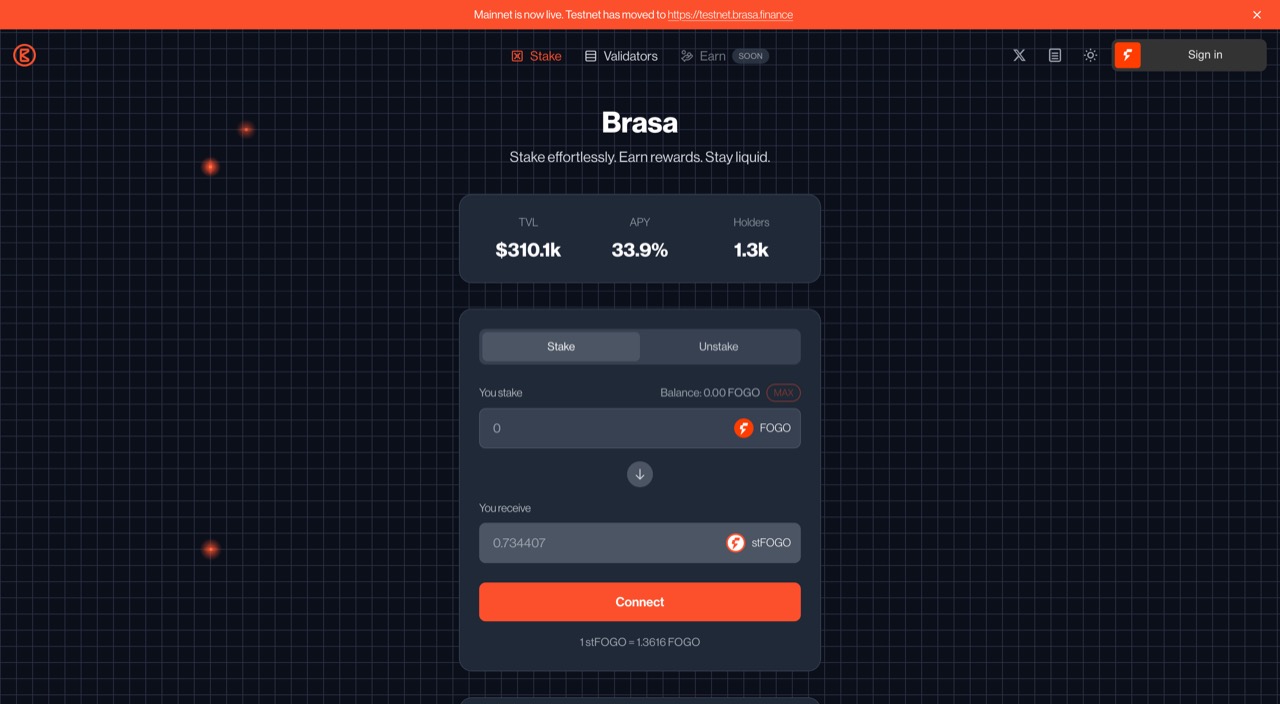 Nền tảng Liquid Staking, cho phép người dùng đúc stFOGO để nhận phần thưởng staking trong khi vẫn giữ được tính thanh khoản cho vốn. Website: https://brasa.finance/