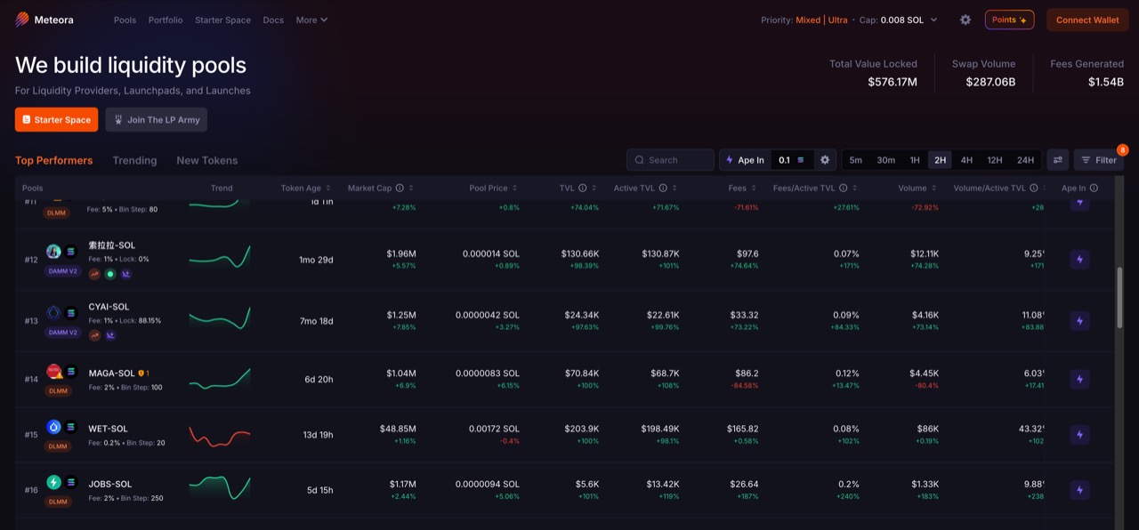 Meteora cung cấp một bộ sản phẩm đa dạng phục vụ cho cả người giao dịch, nhà phát hành token và người cung cấp thanh khoản: