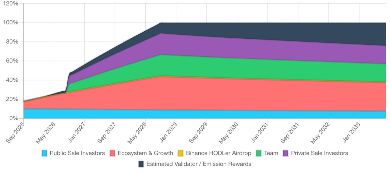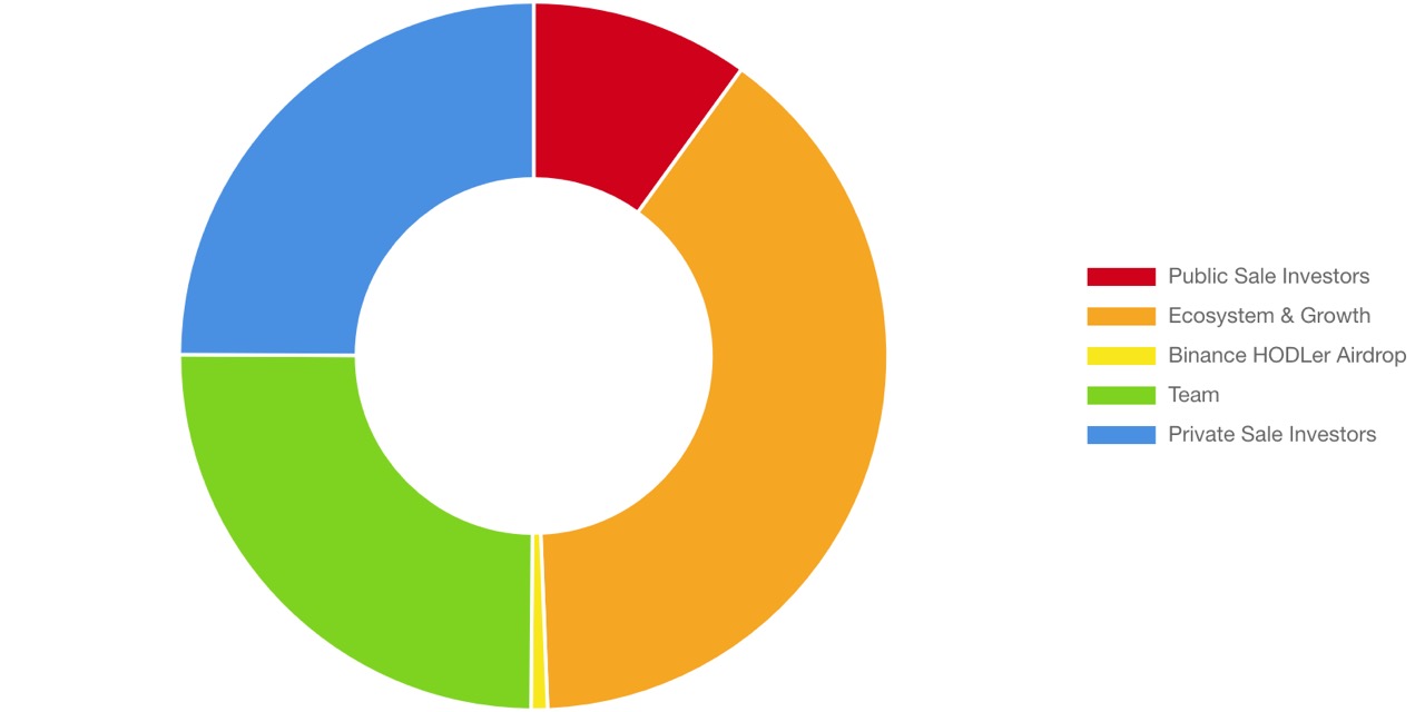 - Nguồn cung lưu hành ban đầu khi niêm yết trên Binance: 1,800,000,000 (18.00% tổng cung ban đầu)
