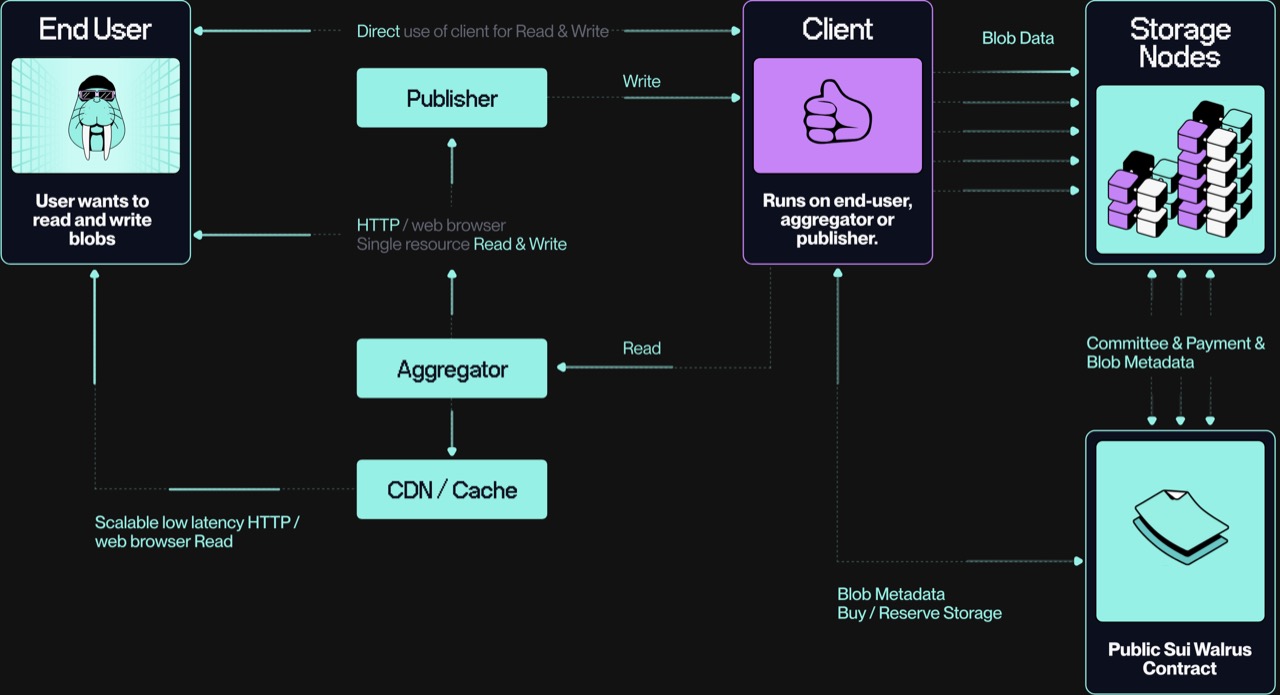 Nhờ cấu trúc này, Walrus không chỉ duy trì được hiệu suất cao trên mạng Sui mà còn đảm bảo tính an toàn, phân tán và sẵn sàng mở rộng. Các thành phần như Aggregator và CDN/Cache giúp tăng tốc độ phản hồi, trong khi hệ thống Storage Node phi tập trung giữ cho dữ liệu luôn được bảo toàn – không phụ thuộc vào bất kỳ máy chủ nào.